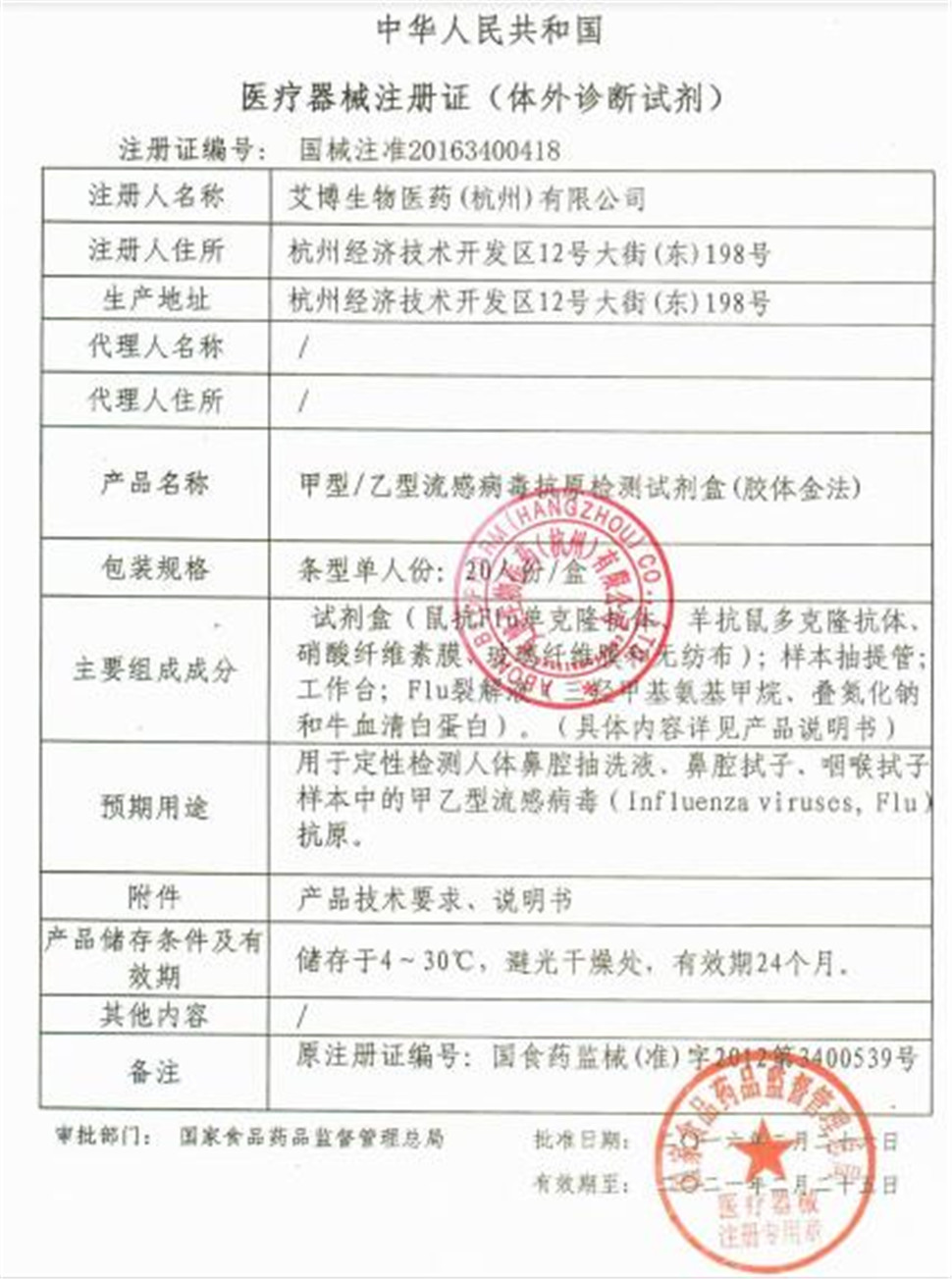 批准文号:国械注准20163400418